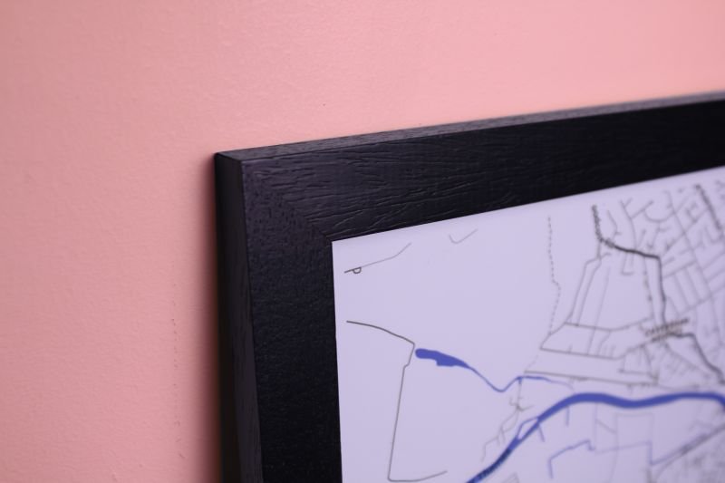 Bring a personal touch to your space with our handmade solid wood black photo frame, crafted in the UK and sized at A3 297mm x 420mm. Each piece includes a personalised map print, created to celebrate a favourite place, meaningful moment, or special memory. The frame is built from quality solid wood with a smooth black finish and includes a sturdy stand for easy tabletop placement.